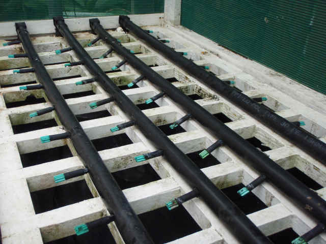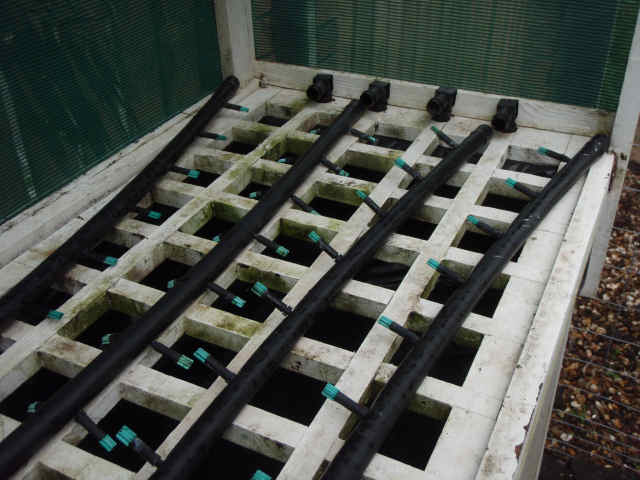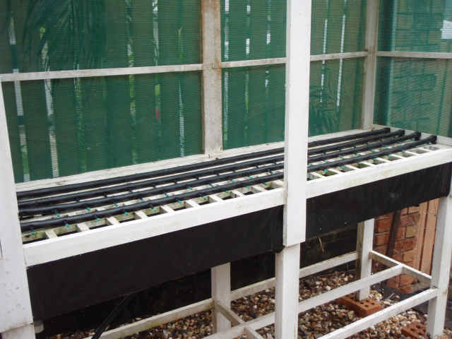 Once the calculations have been performed, the necessary amount of each individual chemical is weighed and dissolved in a seperate one litre quantity of water. The nutrient reservior of the hydroponic system (total volume of 50L in my case) is then filled with approximately 40L of water. Starting with the 'nitrate' containing compounds (except those that contain calcium), the prior dissolved chemicals (1L quantities) are added seperately to the nutrient reservior, mixing well between each addition. Then the other dissolved compounds are added individual, with stirring between each addition, but calcium is added last. The prior dissolution, and adding of the dissolved compounds individually to the bulk solution is to avoid precipitation within the nutrient solution.