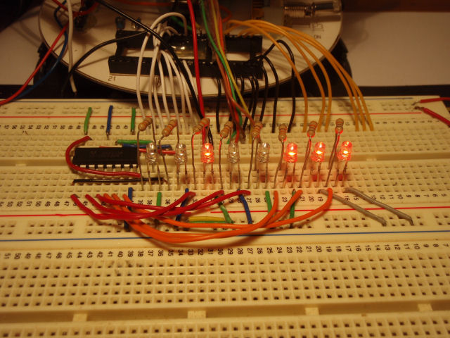 1 x SN74HC595 + 8 x LED's + PIC16F876A