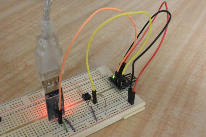 A single button is connect to ATtiny85/Digispark pin B4 so that when the button is unpressed a logical zero or low is present, and conversely when the button is pressed a logical one or high is present.